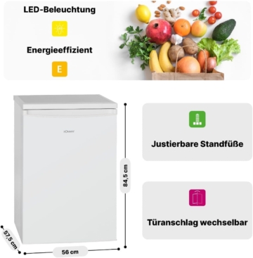An der Unterseite dieses Kühlschranks befinden sich Drehfüße, mit denen man ihn genau ausrichten kann. Die genaue Ausrichtung sorgt ebenfalls dafür, dass keine Vibrationen entstehen. Ein Gefrierfach hist nicht vorhanden. Dieses ist aber für die Winterstarre von Schildkröten auch überflüssig. Dafür steht insgesamt mehr Stauraum zur Verfügung.